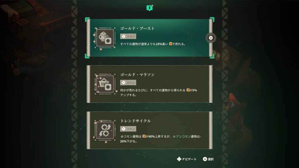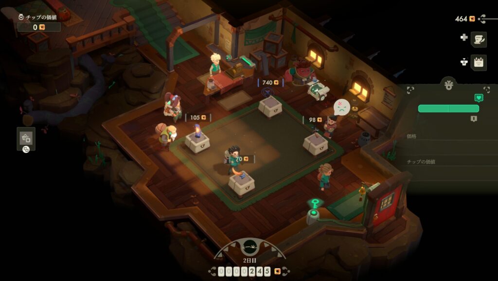 これらの効果はその日限りでリセットされるため、今日はこの効果で一気に稼ごうといった具合に、日ごとに異なる戦略で商売に臨むことができます。